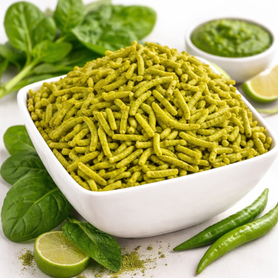 Our Palak Sev is made from high-quality besan mixed with real spinach paste and signature Ratlam masala. The result is a crispy texture with a mildly spicy and flavorful taste that makes it stand out from ordinary sev. The natural flavor of palak combined with authentic spices gives this snack a unique identity that namkeen lovers truly enjoy.