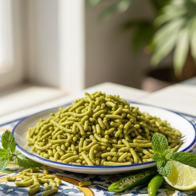 Our Pudina Sev is prepared with carefully selected ingredients and natural mint flavor to create a taste that is both refreshing and satisfying. Each strand of Pudina Sev is fried to perfection, giving it a crispy texture that makes every bite enjoyable. The mild spice level combined with the cool pudina taste makes this sev stand out from regular namkeen options.