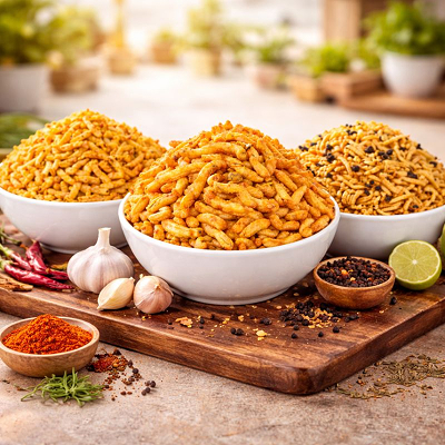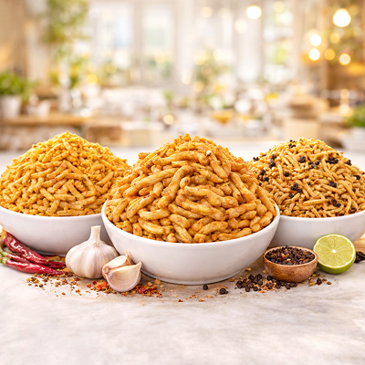 This Authentic Original Ratlami Sev Combo includes Plain, Garlic, and Laung Sev, freshly prepared using traditional Ratlam recipes. Each sev offers a perfect balance of crunch and spice the Plain Sev delivers a light and classic taste, the Garlic Sev adds a bold and aromatic flavor, and the Laung Sev brings a warm, traditional spiced touch.