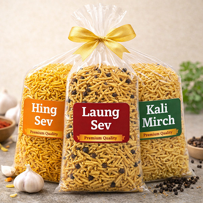 Experience the true taste of Ratlam with our Ratlami Sev Special Combo, a handpicked trio of Hing Sev, Laung Sev, and Kali Mirchi Sev. Crafted using traditional recipes and high-quality ingredients, this combo delivers the perfect balance of crunch, aroma, and bold spice in every bite.
