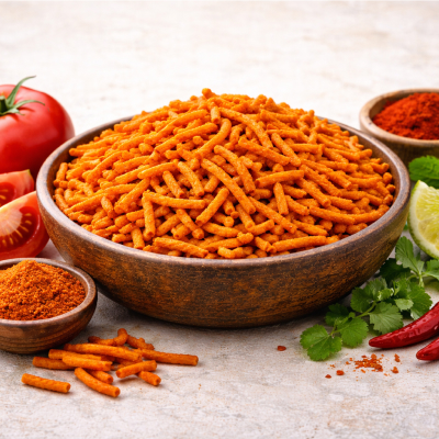 Tomato Sev is perfect for evening tea, movie time, travel snacks, and small hunger cravings. You can also use Tomato Sev as a topping on poha, chaat, or bhel to enhance the taste. The unique tomato flavor adds an extra punch that kids and adults both enjoy.